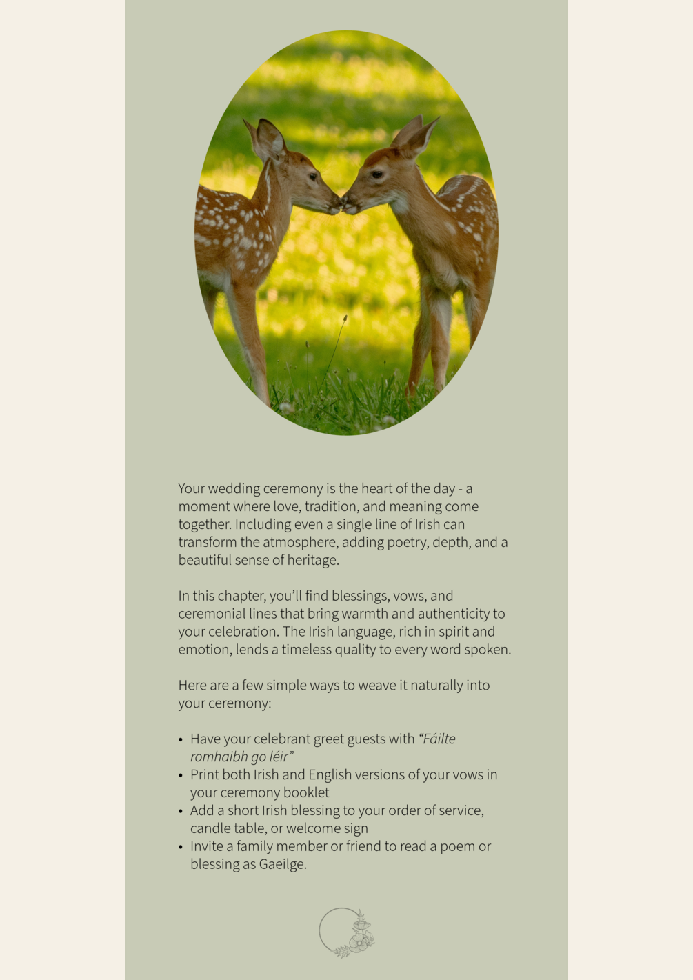 A beautifully designed ebook filled with Irish words, phrases, blessings, and inspiration for your wedding day - perfect for vows, speeches, and stationery.